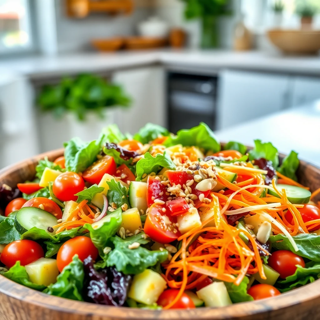 - 샐러드 조합하기: 드레싱을 샐러드에 뿌리고 잘 섞어줍니다. 신선한 허브(파슬리 또는 민트)를 추가하면 더욱 풍미가 살아납니다.