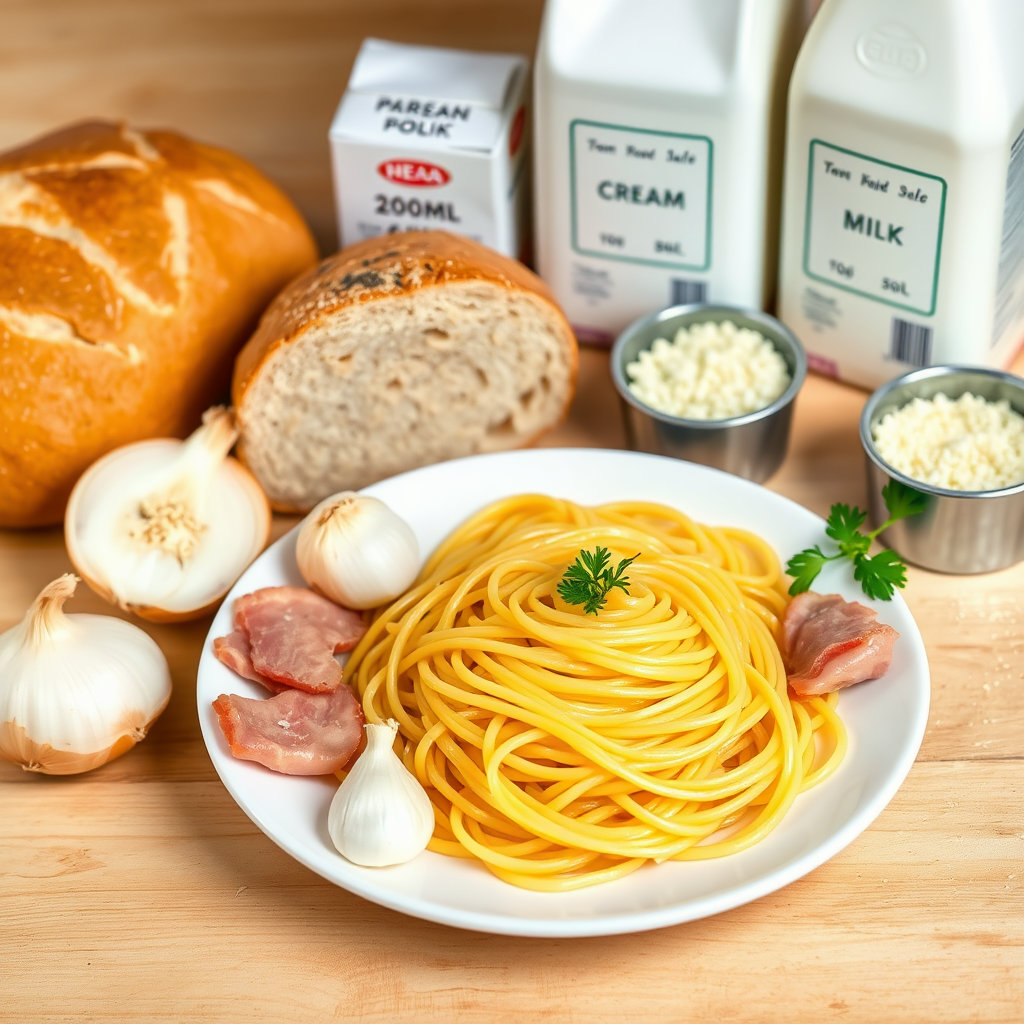 팬에 올리브오일을 두르고 다진 마늘과 양파를 볶습니다. 베이컨을 넣고 충분히 익힌 후 생크림과 우유를 부어 중불에서 끓입니다. 소금, 후추로 간을 하고, 파스타 면을 삶아 넣은 후 전체적으로 잘 섞어줍니다. 파르메산 치즈 가루를 넉넉히 넣으면 풍미가 더욱 깊어집니다.
