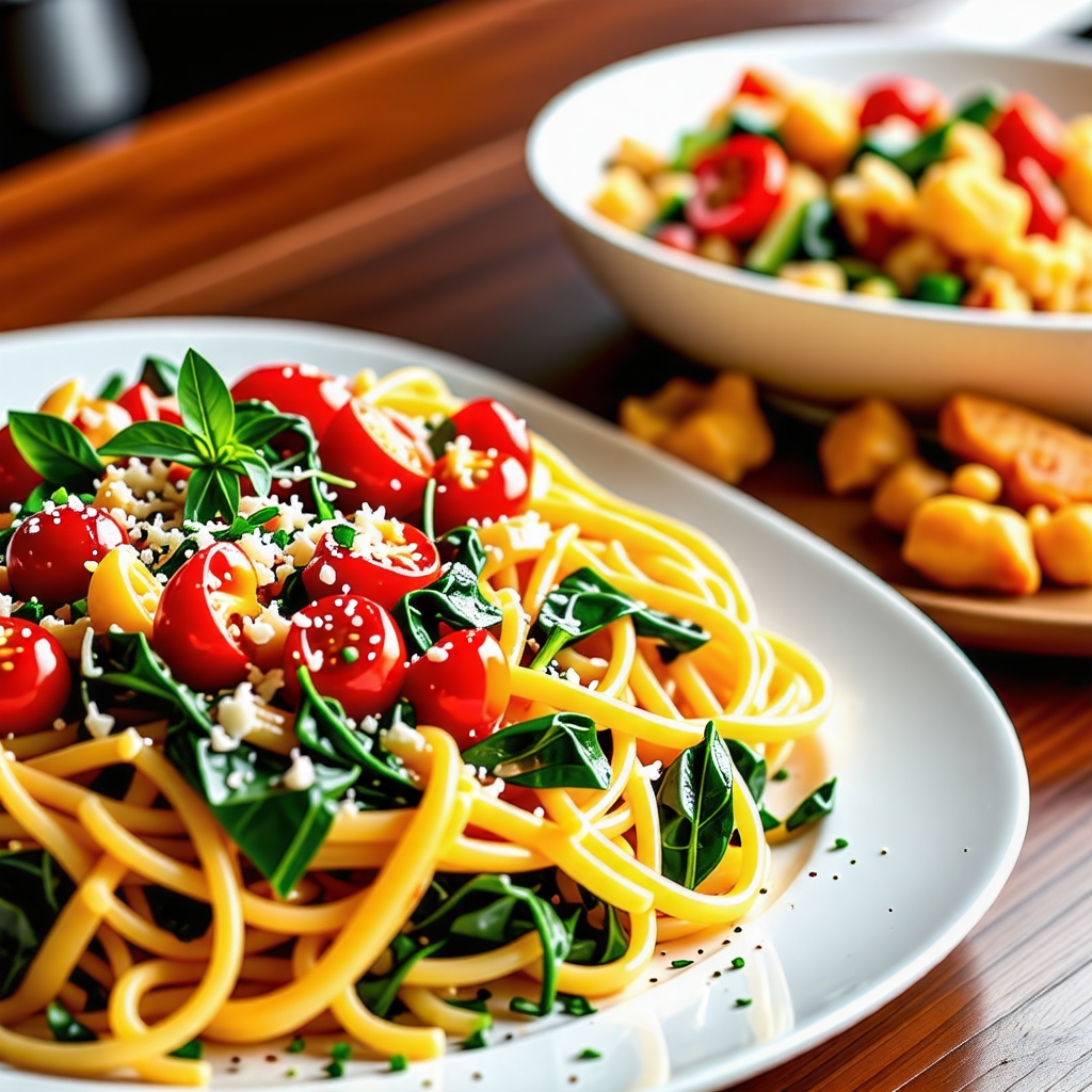 - 채소 볶기: 팬에 올리브 오일을 두르고 중불에서 예열한 후, 다진 마늘을 넣고 볶습니다. 마늘 향이 올라오면 방울토마토와 시금치를 추가하고 3-4분간 볶습니다.