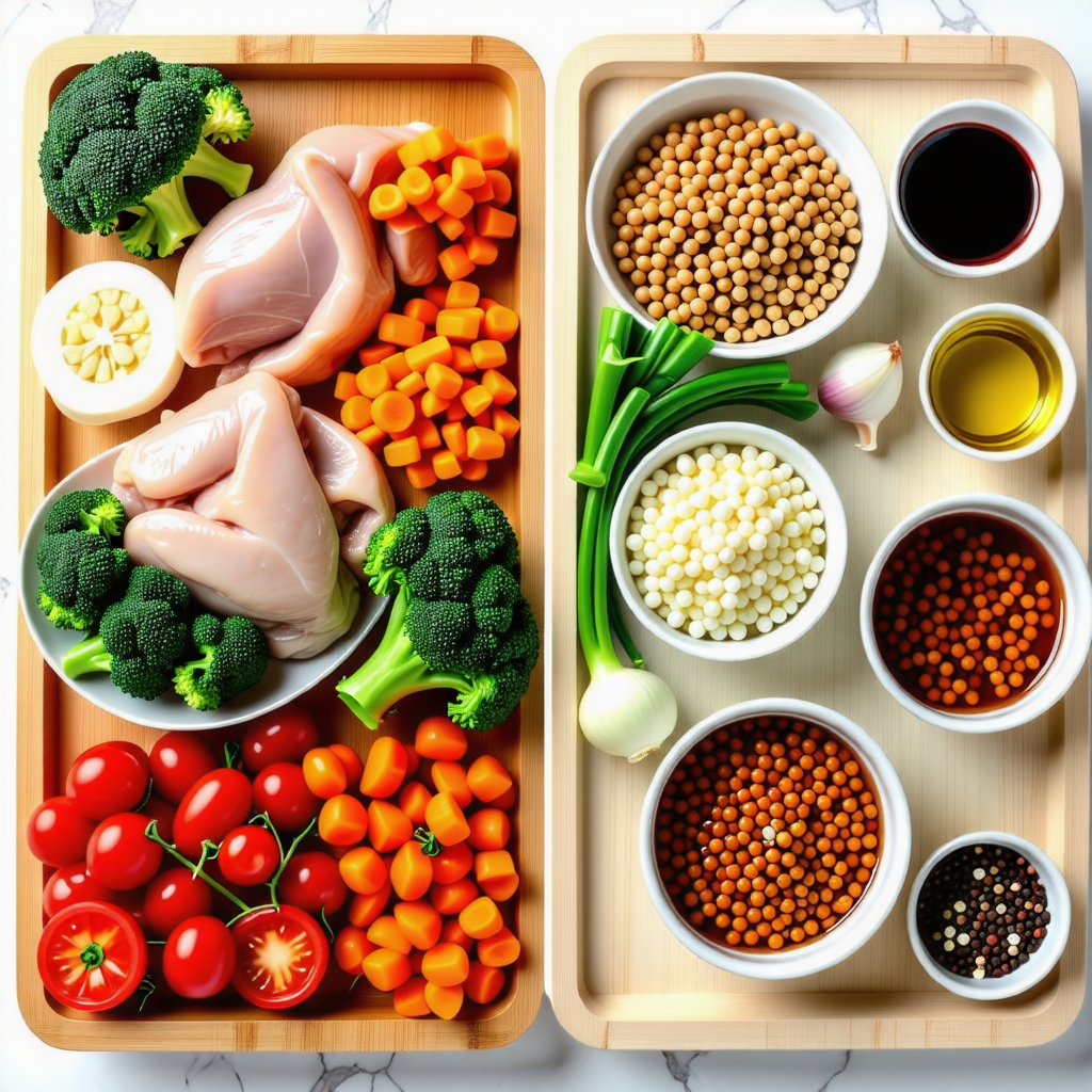 - 재료 손질: 닭가슴살, 브로콜리, 당근, 양파를 손질합니다.